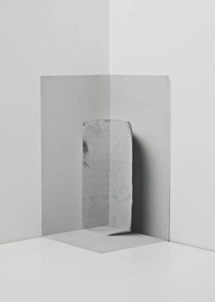 Duchamp's readymades meet Burroughs' cut-ups in Encouble. Merging photography with collage and construction, Burtin’s art blurs the line between image and sculpture, between intention and, in the artist’s phrase, “accident.” Dynamic geometries, by turns as playful as Paul Klee and somber as Agnes Martin, gloss an illusion of order over images whose fluid forms continually invite and rebuff identification and interpretation. Some subjects are photographed as still lives, their status as objects—indeed, as shapes—undermined by deft choices of composition, angle, light. Others are intensely reworked—manually manipulated, photographed and rephotographed until the original object (if such a concept even applies here) is subsumed beneath layers of abstraction. The photographs become object and subject both: mysterious chromatic arrangements whose Benjaminian aura persists even as the they cohere and dissolve into and out of quotidian solidity, or familiar artifacts whose materiality becomes increasingly conjectural under what Duchamp might call retinal examination. Antiheroic in scale, semiotically monumental, and suffused with a wry wit both philosophical and visual in nature, these remarkable transubstantiatations audaciously efface the noumenal world while simultaneously adding to it.